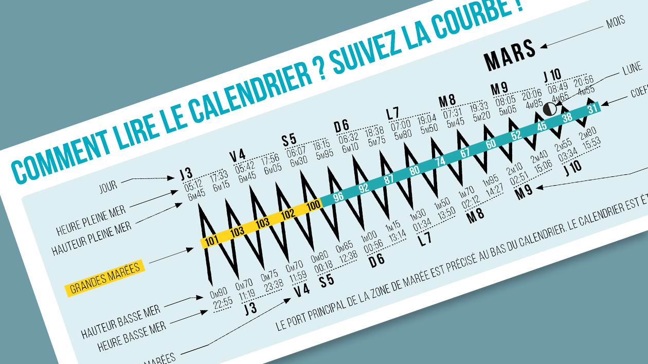 Notre calendrier est aussi un objet décoratif qui égayera et embellira votre intérieur. Simple à lire et à comprendre, il constitue également un excellent support pédagogique pour initier petits et grands au phénomène fascinant des marées.