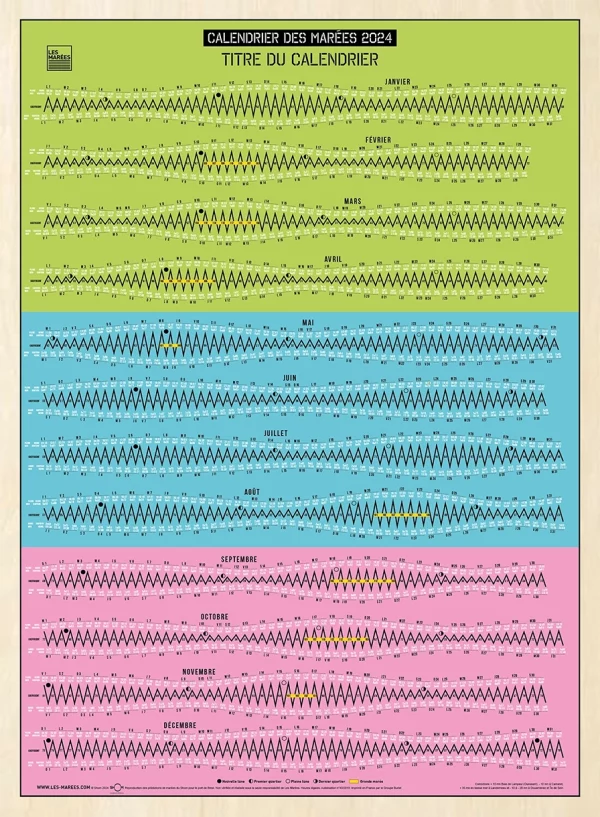 Les détails de l’affiche sont à retrouver sur la notice de lectureainsi que dansnotre articleComment lire le calendrier. Notre calendrier des marées est également un calendrier lunaire et simplement un calendrier ! 🙂