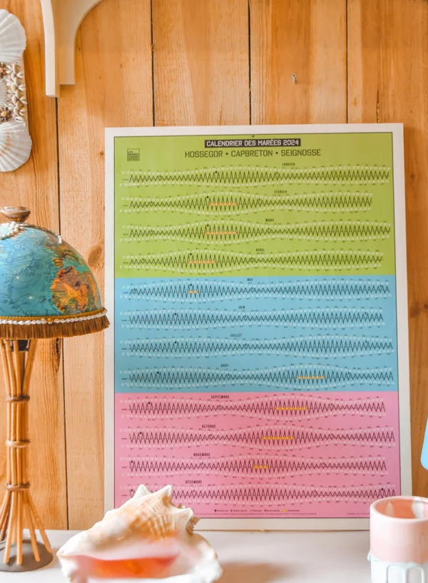 Découvrez notre best-seller : le calendrier des marées. Plus qu’un simple outil, il s’agit de l’incontournable pour tous ceux qui vivent au rythme des marées. Conçu en grand format, avec un design contemporain et des courbes élégantes, il marie parfaitement l’utilité et l’esthétique. Avec une visualisation globale d’une année, anticipez et planifiez vos activités côtières avec clarté !